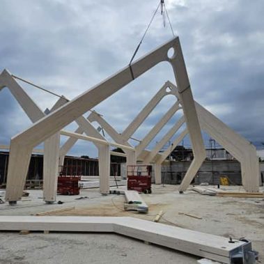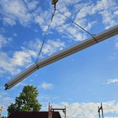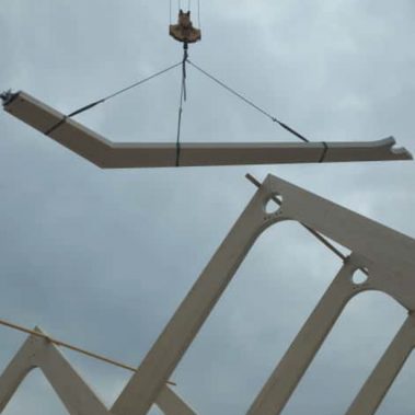 Binderkonstruktionen: Erstellung der weitgespannten Dachtragwerke für großzügige, stützenfreie Verkaufsflächen.
